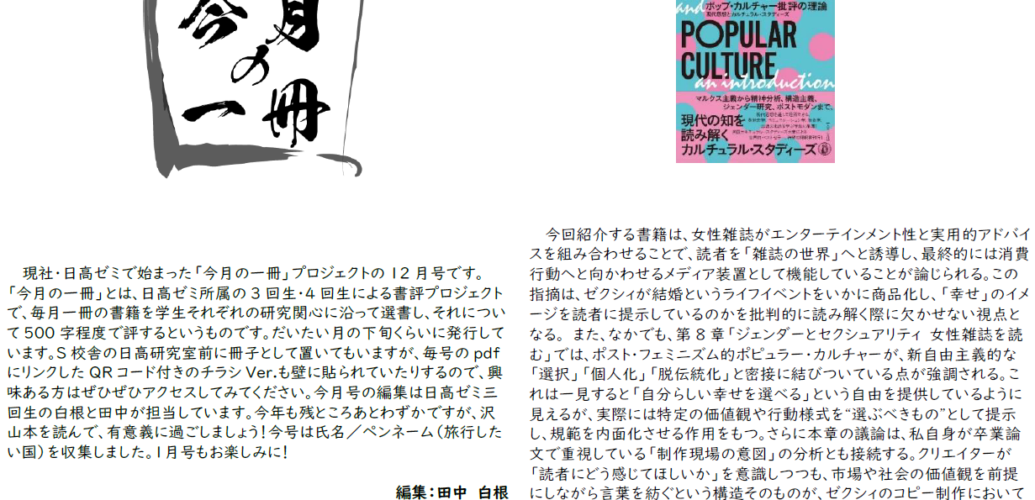 『今月の一冊』2025年12月号が出てました